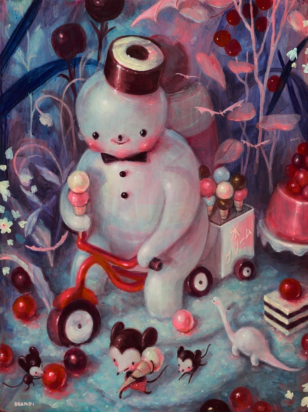 L-R: Brandi Milne’s “Happy Sweet Sequester Days” (acrylic on panel, 24″ x 18″)
