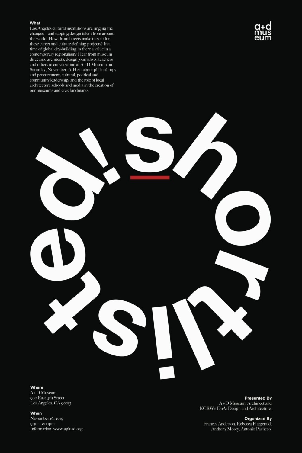 Shortlisted! is co-produced and co-hosted by A+D Museum Executive Director Anthony Morey, Archinect managing editor Antonio Pacheco, architectural designer and SCI-Arc instructor Rebecca Fitzgerald, and Frances Anderton, host of KCRW’s “DnA: Design and Architecture”.