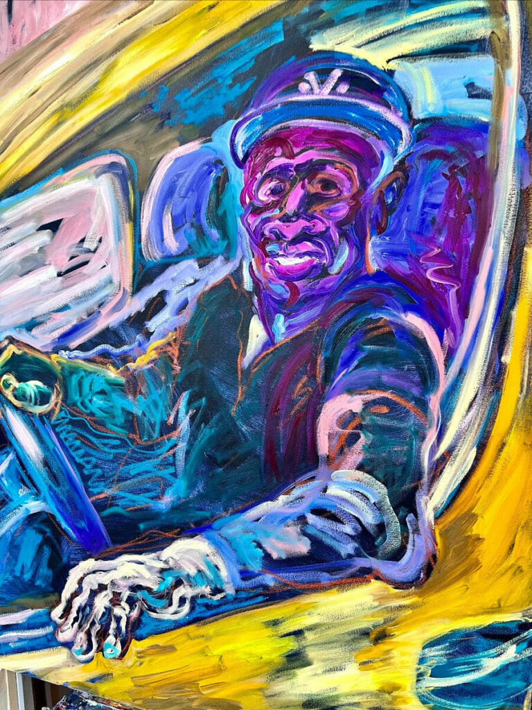 Katya Leonovich, Taxi Driver, 2023, oil on canvas, 60 x 48 inches
