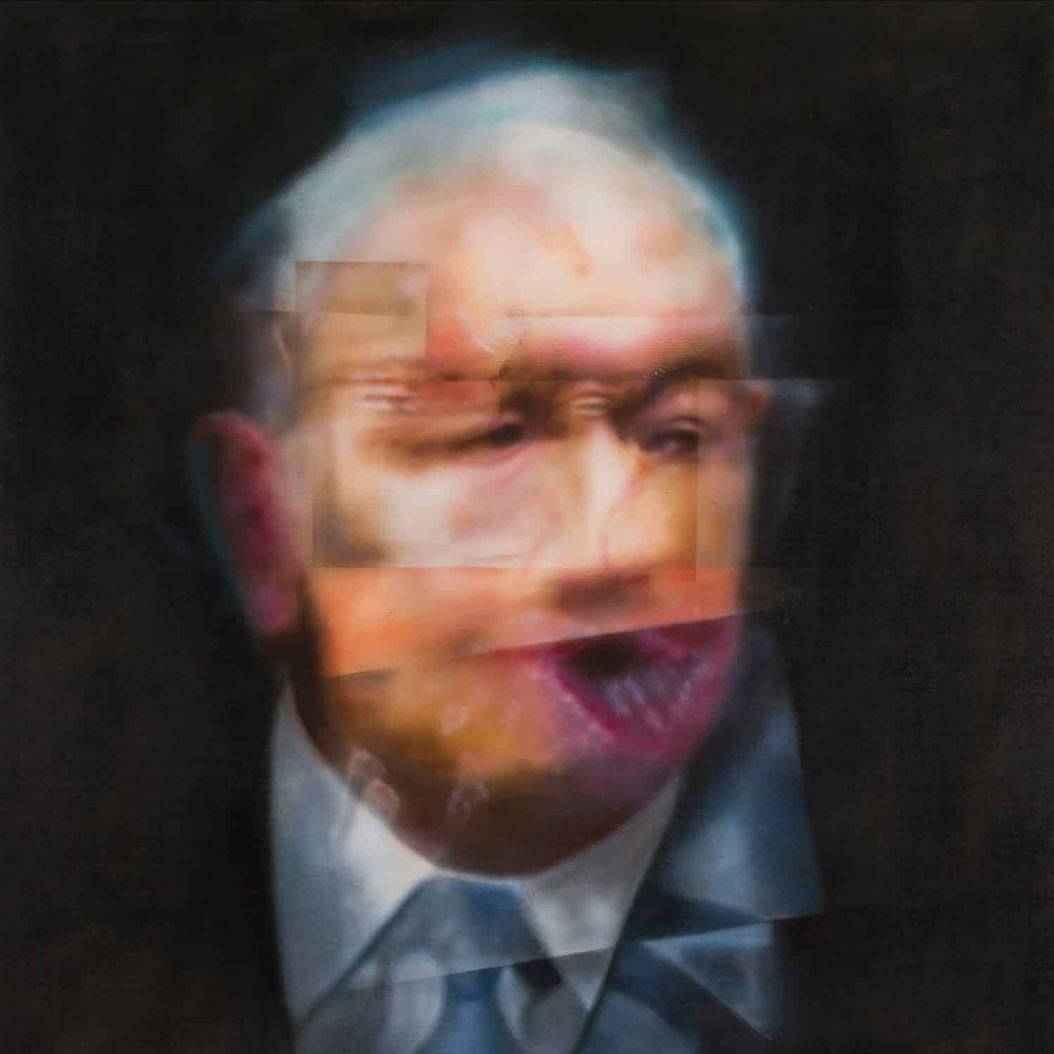 Again using reactive metallic paint, the ??????? (Novichok) paintings use negative images of the suspects in the Salisbury novichok poisoning in 2018. The revelation of the suspects’ identities and resulting information war presented, according to Keane, “a clash of empiricism and denial according to political preference,” describing his paintings as metaphors for “seeing only what conveniently fits a belief system, and ignoring that which is inconvenient.”