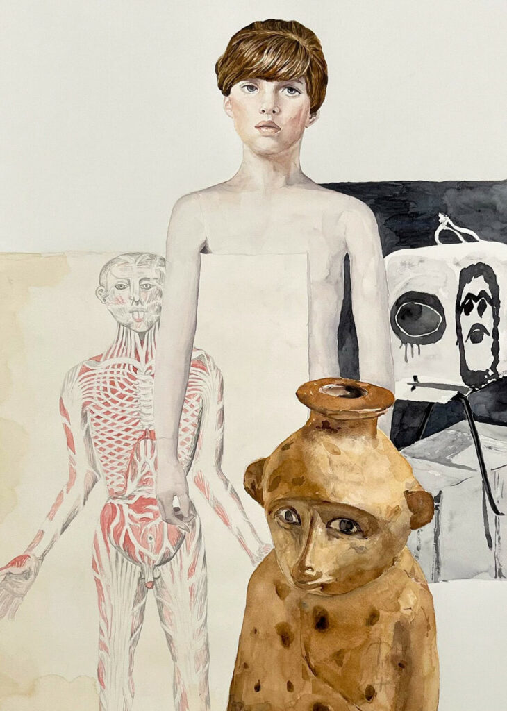 In this new exhibition at Galerie Maubert, Nathalie Talec continues her explorations, both real and metaphorical, and presents a body of works on paper, objects and sculptures, revolving around a youthful, omnipresent, multiple and troubling figure who is none other than herself. Through what appear to be serendipitous collages, these self-portraits reveal a deeper part of the work, one that escapes consciousness, one that assumes an obsession with duality, shamelessness, bewilderment, desolation and its asperities.