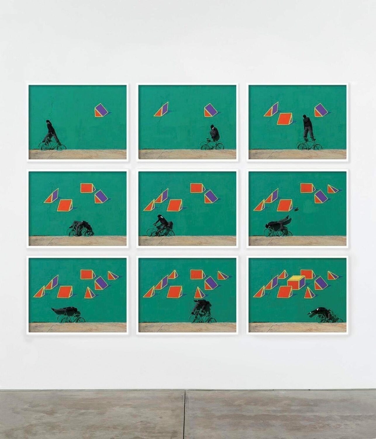 Robin Rhode came of age in newly post-apartheid South Africa, when youth culture was under the growing influence of hip-hop, film, and sports. These influences, alongside the community’s reliance on storytelling in the form of colourful murals and graffiti, encouraged the development of his hybrid street-based aesthetic.