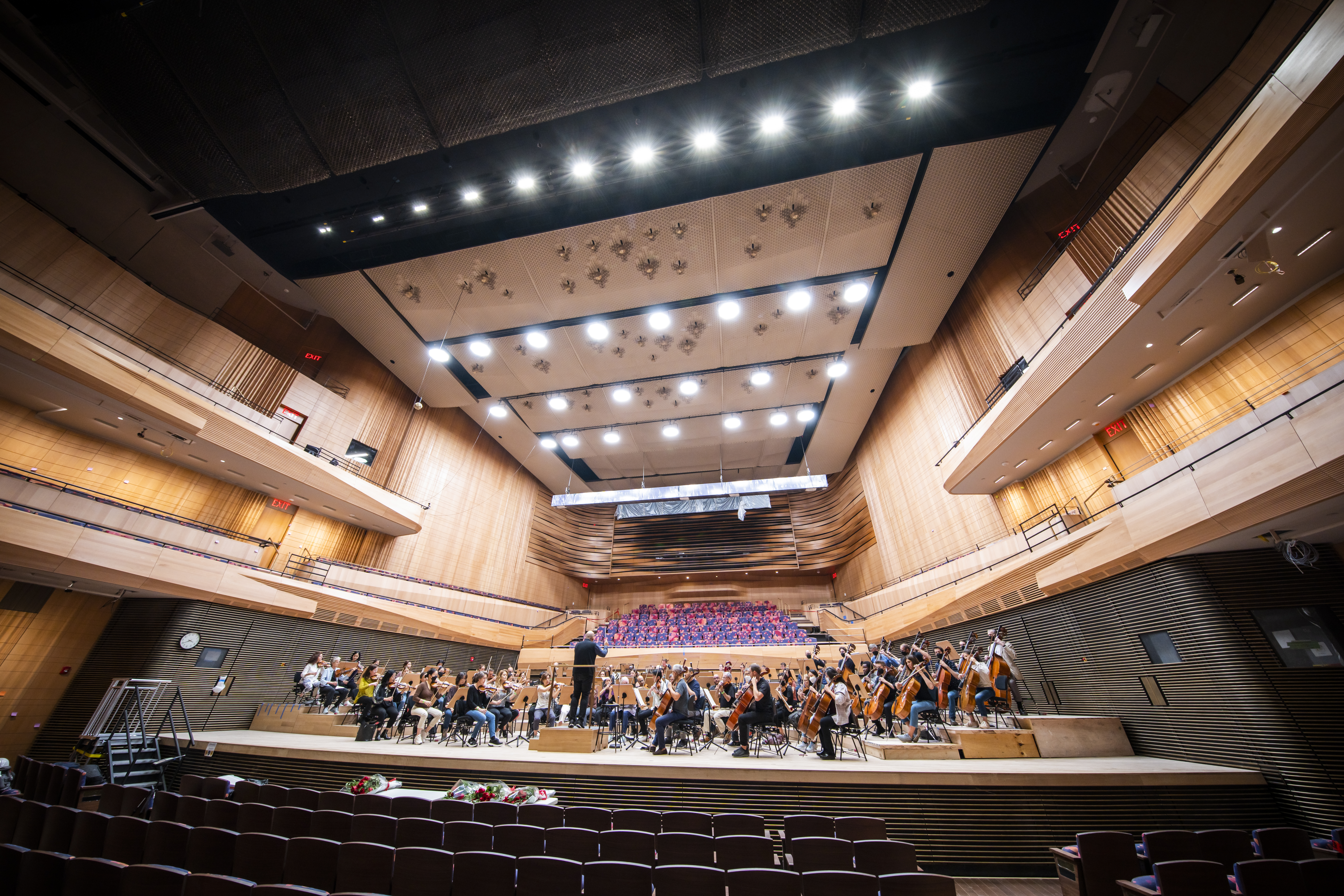 The theater design’s state-of-the-art flexibility offers new capabilities and configurations, as motorized stage lifts and built-in screens will accommodate dance, film premieres, amplified rock concerts and more, ensuring new and exciting opportunities for the next generation of composers and performers. Full technical description available here.