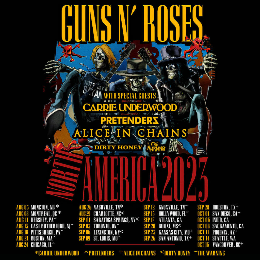 Guns N’ Roses are currently continuing their massive 2023 global tour now visiting historic venues across the U.S. and Canada such as Fenway Park in Boston, MA on August 21 and Wrigley Field in Chicago, IL on August 24. The tour concludes in Vancouver, BC at BC Place on Monday, October 16. This leg comes following the band’s largest run to date consisting of legendary performances in Europe across stadiums, festivals, and arenas this year including acclaimed festival performances at Glastonbury and London’s Hyde Park.