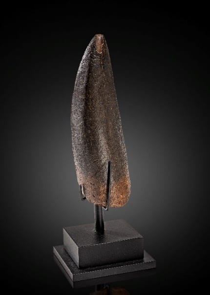A Tyrannosaurus-rex tooth dated to the last period of the Cretaceous period, about 65 million years ago, most probably from the anterior jaw, is remarkable for its size. Bidders were able to see the rarity of this specimen, which is a full 10.9 cm long and was sold for €20,400 (estimate: €15,000-20,000).