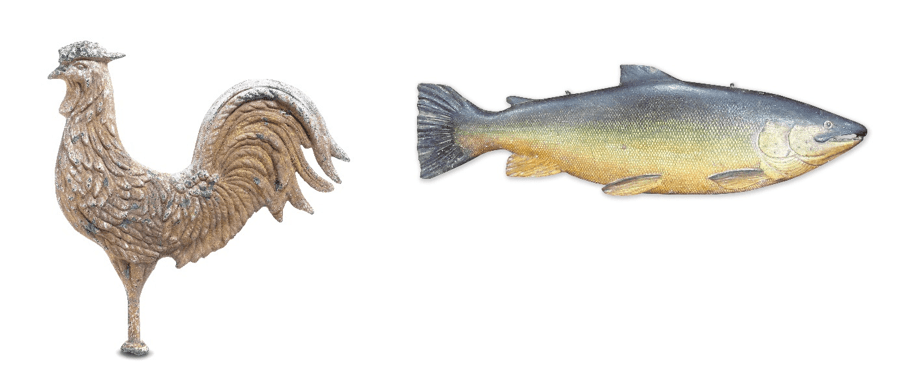 - A 19th century gilt painted zinc cockerel weathervane. Estimate: £800-1,200.