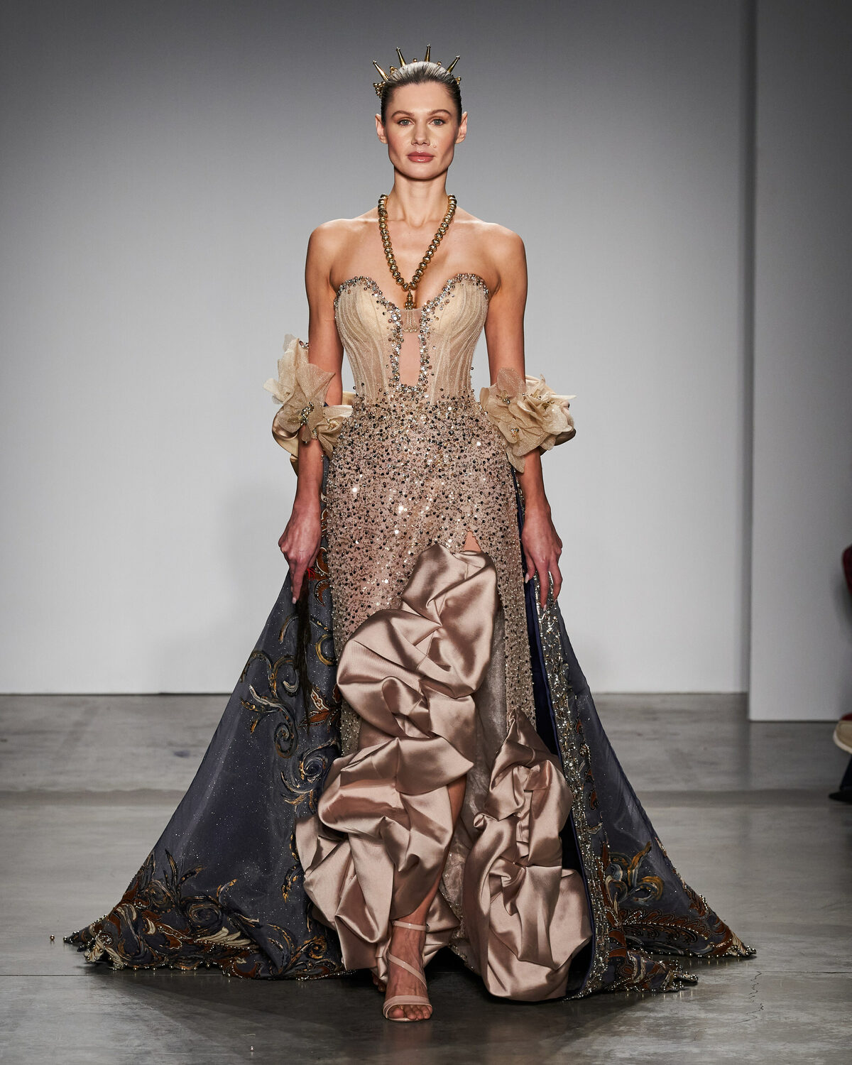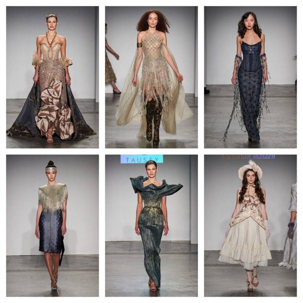 Taussy Daniel’s stunning collection of formal evening wear was a mix of wearable art, all statement pieces, and all dresses from shades of seafoam and chartreuse to more traditional colors.
