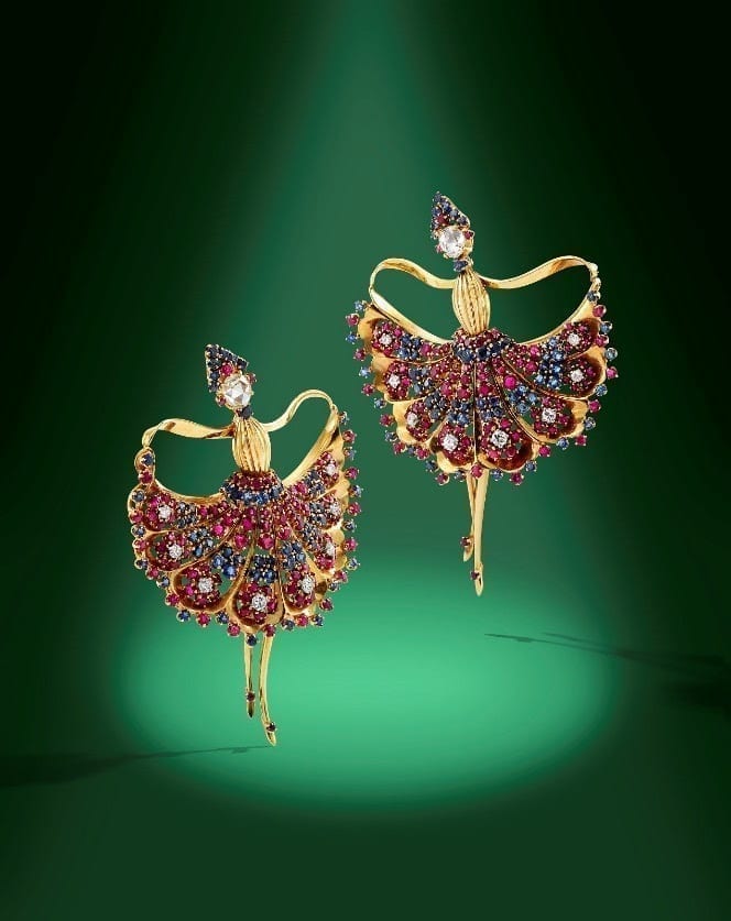 Two 18k gold and gem-set ballerina brooches, John Rubel Co., circa 1950
