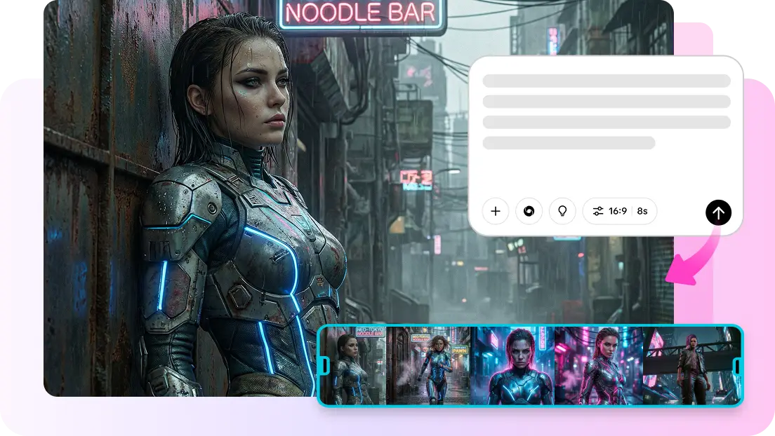 • Type a detailed prompt, including scene, style, mood, and lighting, in the prompt box.