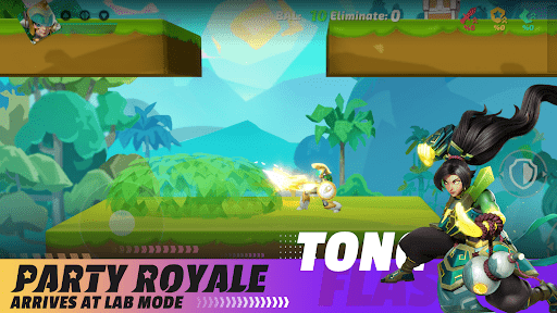 Formerly available as a lab-mode only, Party Royale is also officially launching in this version of the game, supporting 10-player battles to further turn up the heat. During a match, players can hunt for treasure chests to obtain items to bolster their strength. Springboards scattered around the map can also be used to catch your opponents unaware in a dastardly sneak attack, ensuring that gameplay retains an element of unpredictability.