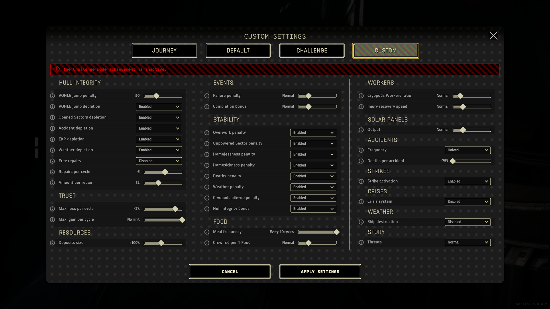 - Default: The intended IXION experience and is recommended for players familiar with city builders.