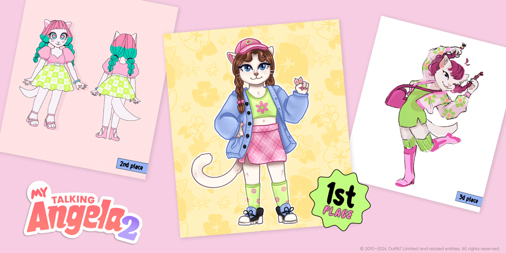 In addition to Sadie’s grand-prize-winning design, Outfit7 also acknowledged the first runner-up, Madison’s “Sweetheart Games,” and the second runner-up, Neja’s “You Grow, Girl!”. All three designs capture the creative essence of Talking Angela and truly feel like a continuation of Angela’s own fashion line. The winners were selected by a panel of three judges appointed by Outfit7, who made their selections based on four criteria: originality, complexity, adaptability, and ‘the perfect fit’.