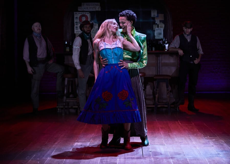 Reprising their roles from the RSC the cast includes: Bridgette Amofah (she/her) plays Mary; Lee Braithwaite (they/he) plays Lucy/Lou; Shaun Dingwall (he/him) plays Frank/Tommy; Michael Elcock (he/him) plays George; Colm Gormley (he/him) plays John; Vinnie Heaven (they/them) plays Jack; Paul Hunter (he/him) plays Sheriff Roger Jones; Lucy McCormick (she/her) plays Jayne; Sophie Melville (she/her) plays Miss Lillian; Julian Moore-Cook (he/him) plays James; Emma Pallant (she/her) plays Sally-Ann; and LJ Parkinson (they/them) plays Charley Parkhurst.