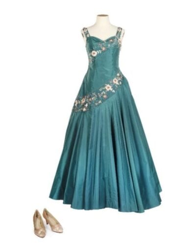 - Emma Corrin (as Princess Diana): Blue dancing dress with silver flecks and flounce sleeves. Season 4 Episode 6. Estimate: £2,000-3,000.
