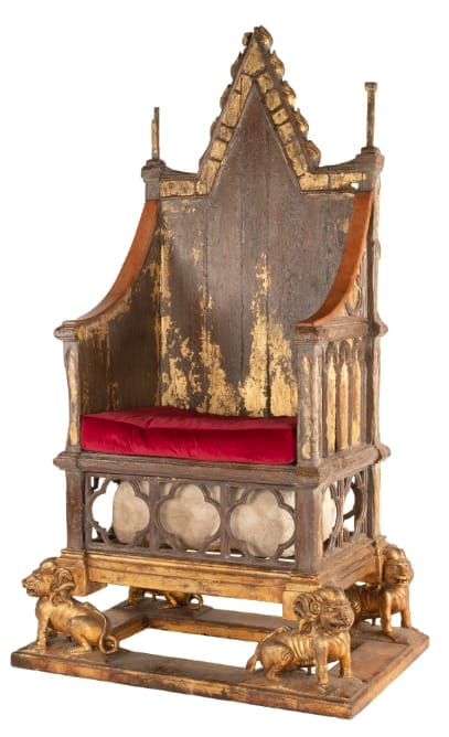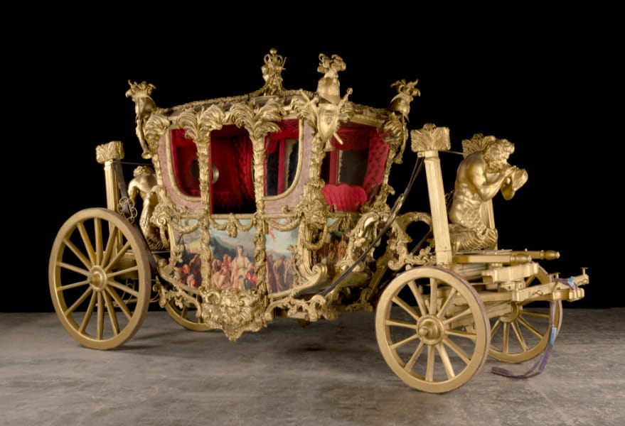 Poring over hours of archive footage, The Crown’s creative team captured as much of the reality of the Coronation as possible. The exquisite recreation of The Queen’s Coronation ordaining dress, Imperial Mantle and red Coronation robe will be offered in the sale with an estimate of £20,000-30,000, alongside the world’s only reproduction of the Gold State Coach with an estimate of £30,000-50,000, and a reproduction of the Coronation Chair (Saint Edward’s Chair) with an estimate of £10,000-20,000.